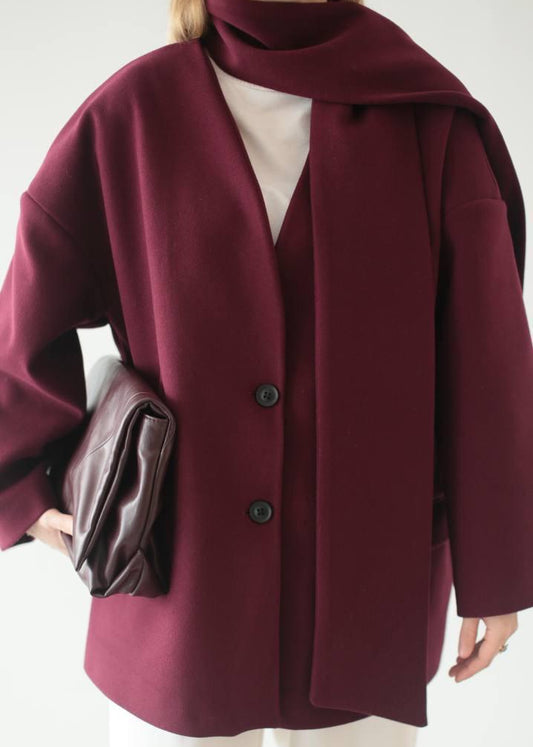 Sold outBurgundy Statement Coat With Scarf