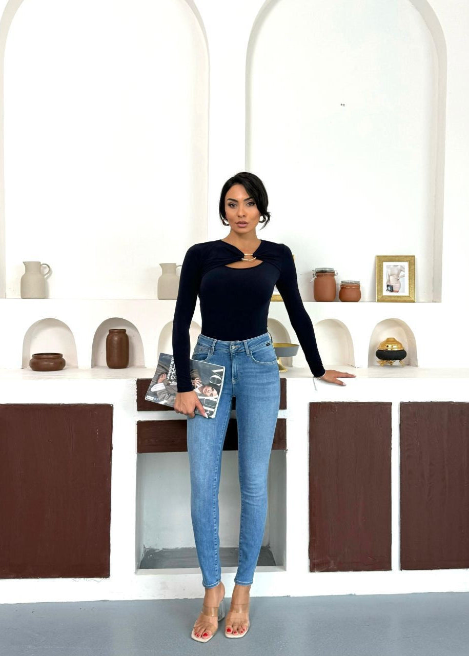 Navy Blue Buckled Top